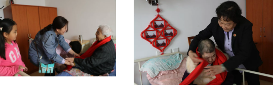 党工团妇代表为老人戴上温暖的红围巾