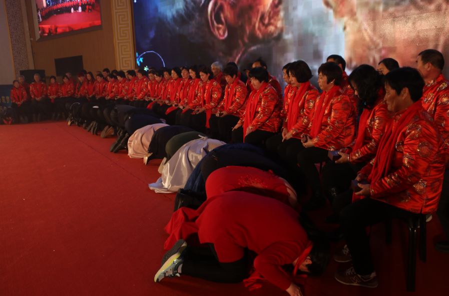 孝亲奖得主的父母们提前三天来到了大北京,游览了首都的大好风光,年会现场上,父母们也被邀请到了舞台上,青姐为父母们发了红包和金项链。